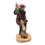The Emmett Kelly 1987 Circus Clown Collection Golfer figurine is a limited edition collectible that features a clown character in a golfing theme. Signed by the artist, Emmett Kelly, this small porcelain figurine stands at 6 inches tall and depicts a whimsical and colorful circus clown. This original piece from the late 20th century is a part of the Circus Clown collection and is ideal for any room in an adult's home, making it a perfect addition to any collection of decorative figurines.