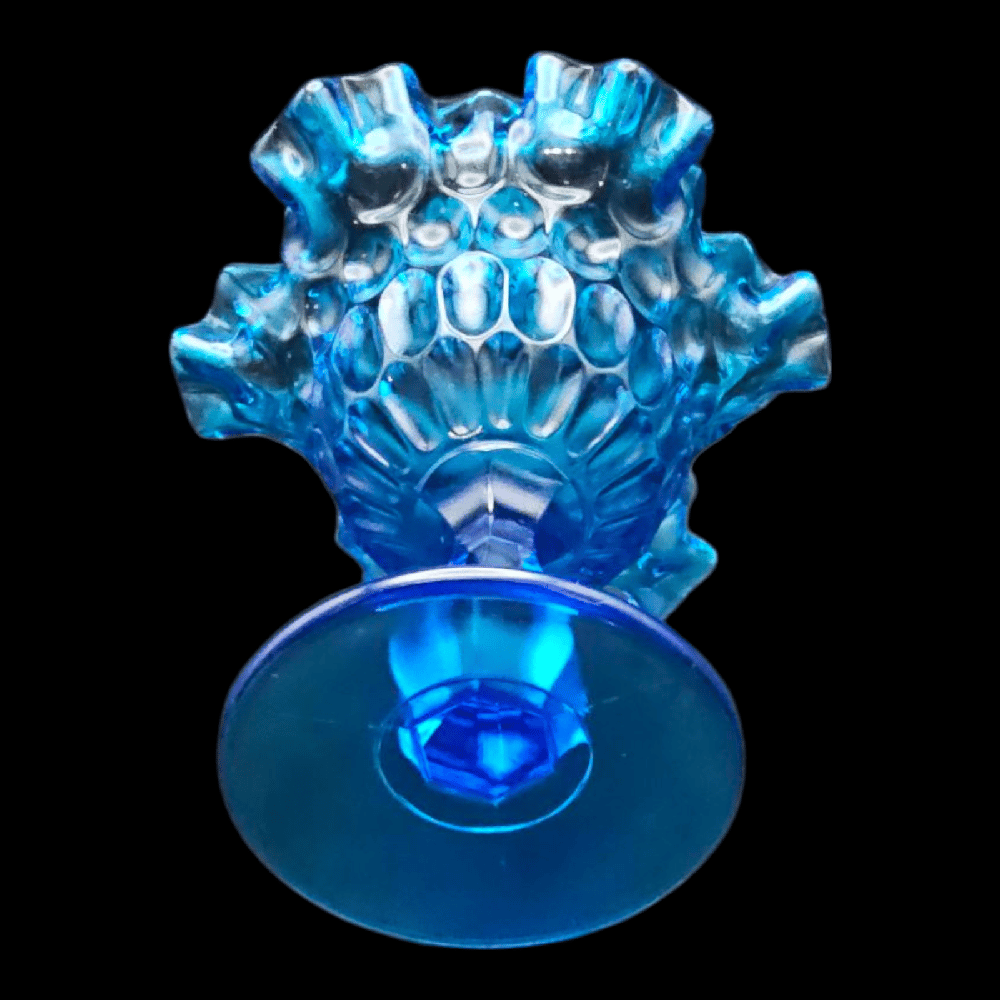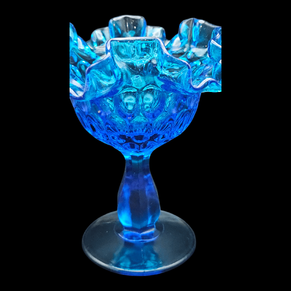 Fenton Cobalt Blue Thumbprint Ruffled Edge Compote
