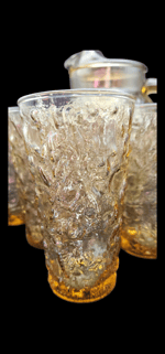 Vintage Anchor Hocking Lido Honey Gold Pitcher & Beverage 6 PC Set