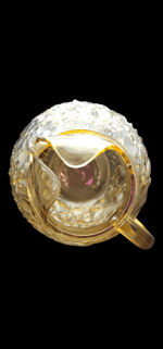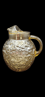 Measurements: Pitcher 9" tall by 7" wide, Glasses 5 3/8" tall by 3" wide.