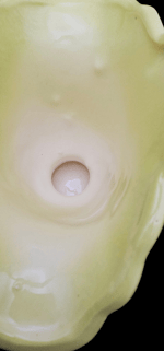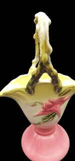 In great condition! Measuring approximately 9 inches with handle and 6 inches at the widest part of the basket. No crazing that I can visibly see, chips or cracks!