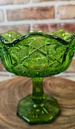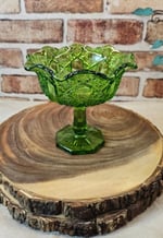 Vintage L.E Smith Heritage Quintec Green Glass Compote