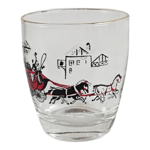 This set of 5 vintage Libbey low ball glasses features a charming stagecoach and horses design, perfect for adding a touch of Mid-Century Modern style to your barware collection. Made of clear glass with a glossy finish, these round whiskey glasses stand at 3.5" tall with a 3" diameter. The original vintage pieces are a unique addition to any drinkware collection, with a theme of a carriage and horses, making them a lovely choice for special occasions or everyday use.