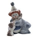 This Vintage LLADRO Pierrot Clown With Puppy Dog & Ball No 5278 5" Figure is a beautiful collectible piece that depicts a charming scene of a clown, puppy, and ball. Handmade in Spain in 1985, this limited edition figurine features intricate details and a glossy finish. The European style and multicolor porcelain material make it a unique and elegant addition to any room's decor.